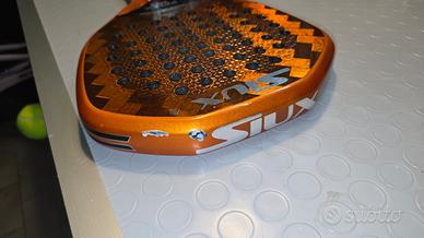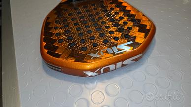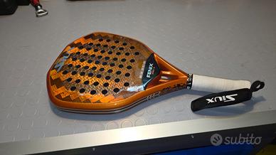 Vendo Siux Fenix Pro 4 Nuova utilizzata solo una decina di volte. Grip intonso. Usata da primo gioco con overgrip 4ON. Peso 364 con overgrip e laccetto. Pala molto performante per livello intermedio/avanzato. Presenti solo due salti di vernice da contatto con grata visibili in foto.