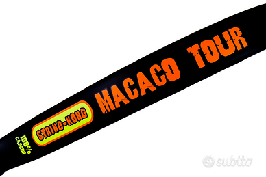 Finalmente è tornata l'iconica racchetta da padel Macaco Tour 365g, la nuovissima racchetta da Padel prodotta da STRING-KONG, composta da un rivestimento al 100% di grafite 3K e da un cuore in EVA di alta qualità con un grado di rigidità che permette di effettuare colpi molto potenti ma allo stesso tempo mantenere alto il livello di comfort sul braccio.
