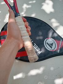 Racchetta in buono stato, anche il manico è un po' usurato e la vernice nera è sbiadita. Con Custodia.