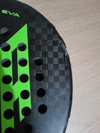 Racchetta da padel che presenta una crepa, ma ancora giocabile. Ottima per principianti