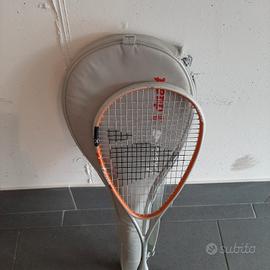 Vendo racchetta da squash usata con relativa custodia e 2 palline puntino giallo; consigliabile il cambio del nastro dell'impugnatura.