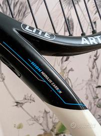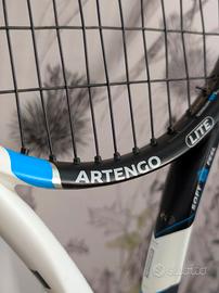 Racchetta da tennis Artengo, ideale per iniziare a giocare. La racchetta è di colore blu, bianco e nero.