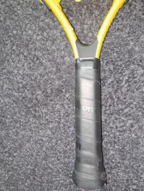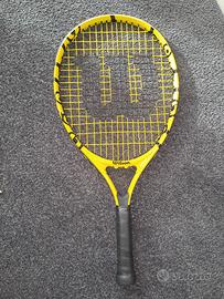 Bella racchetta da tennis per bambini, qualche piccolo segno sul telaio, usata poche volte. praticamente nuova. Ottima per prima esperienza!