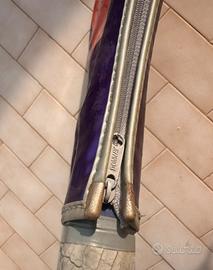 Vendo iconica racchetta da tennis Donnay Andre Agassi Comp 110, modello originale dei primi anni '90. Un pezzo di storia del tennis, celebre per essere stata la linea utilizzata dal "Kid di Las Vegas" nel suo periodo più ribelle e iconico. Caratteristiche e Condizioni: • Modello: Comp 110 (Oversize) • Stato del telaio: Ottime condizioni estetiche, senza crepe o danni strutturali. I colori viola e arancione sono ancora vividi. • Corde: Originali e integre (si consiglia l'incordatura nuova solo in caso di utilizzo intensivo in campo). • Grip: Condizioni originali (presenta i normali segni del tempo, facilmente copribile con un overgrip). • Fodero: Incluso fodero originale Donnay coordinato in ottime condizioni. Perfetta per collezionisti, amanti del vintage o per chi vuole scendere in campo con uno stile unico e "old school".