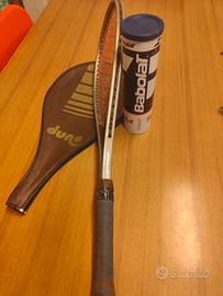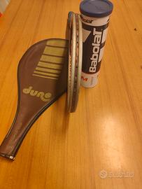 Racchetta tennis Marrone con custodia salva Battuta in tinta,+ 1 confezione di 4 palle Babolar team.Larga 23cm. Lunga 68 cm.