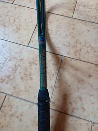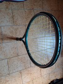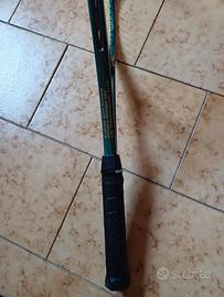 racchetta in buone condizioni (priva di crepe o parti logorate, solo qualche graffio superficiale nella testa della racchetta) in grafite con fodero in ottime condizioni.