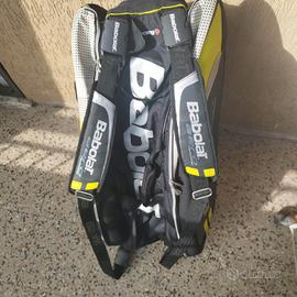 vendo racchetta tennis head challenge pro, peso 285gr, piatto 100, manico 2 ottime condizioni, borsone babolat aero technology, scomparto centrale+ 2 laterali, sacca porta scarpe, vano separato per bibite, altri scomparti davanti e sopra, zip ok, ottime condizioni.