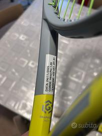 Vendo nuovissima racchetta da tennis marca Head modello Extreme MP, piatto 100, peso 300g, manico 2. Incordata e poi usata poche volte, quindi ancora utilizzabile. (Foto da 1 a 4). Regalo altro telaio identico, da incordare, con piccola lesione laterale…giocando non si sentono vibrazioni, credo sia buona come seconda racchetta. (Foto 5 e 6).