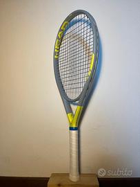 Il prodotto viene venduto già incordato e con un overgrip già applicato sul manico, ma il logo Head non è riprodotto sulle corde; le principali caratteristiche della racchetta, presenti anche nella terza foto, sono: