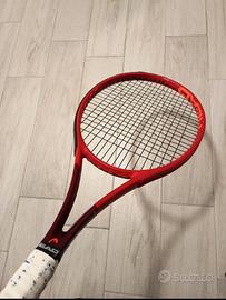 Racchetta da tennis Head Prestige Pro. Peso 315g Piatto 95 Schema corde 16/19 Bilanciamento 315mm Manico 3 In ottime condizioni. Monta metà passacorde di colore nero poiché quando é stato cambiato non era disponibile rosso.