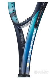 racchetta tennis Yonex E Zone 105 , peso non incordata gr. 275, misura manico 3, incordata Tecnifibre TGV cal. 1,25. Acquistata per errore la scorsa settimana. Mai usata. Manico ancora con cellophane e etichetta. No spedizione.