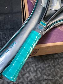 Racchetta tennis Tacchini manico 4L-4 1/2L nuova mai incordata mai usata ancora con copertura su manico. Compresa borsa custodia. Il tutto in condizioni nuove.
