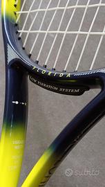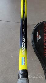Racchetta da tennis Rossignol modello Florida con suo fodero. Corde originali con logo ancora tese. Low vibration system. Colore giallo e blu.