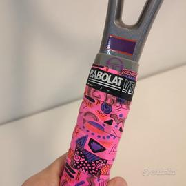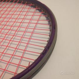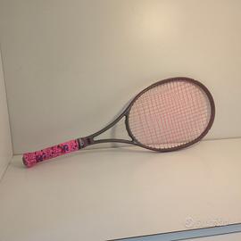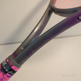 Racchetta tennis Sergio Tacchini Energy 200 vintage anni 90 con custodia Racchetta da tennis vintage Sergio Tacchini Energy 200, mid-size, lunghezza 68 cm, diametro testa 25 cm. Struttura in composito con Kevlar, grafite e fiberglass. Colore viola e rosa con manico rosa. Completa di custodia originale. Racchetta in buone condizioni generali con segni del tempo, come da foto. Spedizione con imballaggio accurato o possibilità di ritiro a mano a Varese o a Milano.