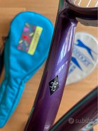 Vintage, fine anni ’80, manico L3, come nuova, neanche un graffio, perfettamente incordata con il suo logo originale della pantera sulle corde; fodero Slazenger Panther Series e custodia Slazenger per due racchette con tracolla regolabile. Introvabili in queste condizioni. Overgrip nuovo.