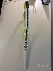 Racchetta tennis Tecnifibre TF-X1 300 già incordata, colore gialla, bianca e nera. Caratteristiche: - peso: 300g - bilanciamento: 320 mm - dimensione testa: 645 cm^2 - lunghezza: 685 mm
