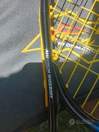 Vendesi splendida racchetta da tennis HEAD Agassi Defiant, modello iconico ispirato alla linea "Radical" utilizzata dalla leggenda del tennis Andre Agassi negli anni '90. La racchetta presenta la classica livrea nera con dettagli giallo/arancio, perfetta per i nostalgici dell'epoca d'oro del tennis o per chi cerca un telaio solido e con carattere. Caratteristiche tecniche: Modello: Agassi Defiant (Radical Performance Series). Grip: Misura L2 (4\ 1/4). Schema corde: 18 Main / 19 Cross (ideale per il controllo). Tensione consigliata: 29 \pm 2 kg / 64 \pm 5 lbs. Produzione: Made in Taiwan (periodo storico Head).