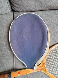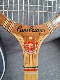 Racchetta tennis vintage Cambridge con custodia. Fatta in legno, corde ormai dure. La custodia ha un taglio nel vano palline. Perfetta da esposizione.