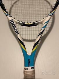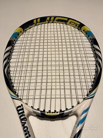 Vendo racchetta da tennis Wilson Juice 100 BLX in ottime condizioni. Inoltre é stata appena incordata con Wilson Sensation.