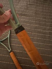 Entrambe le racchette hanno montato un grip in cuoio naturale in ottime condizioni e corde in budello (Babolat VS touch).