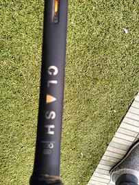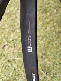 Usata ma tenuta bene, appena incordata, il telaio presenta solo segni superficiali, nessuna ammaccatura. Customizzata con 7,5 grammi sul piatto per aumentarne la potenza, i pesi possono essere rimossi.