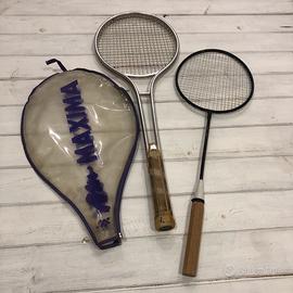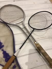 La prima è una racchetta da tennis vintage in alluminio, un oggetto da collezione ideale per appassionati prodotta in Taiwan,mentre la seconda è una racchetta da badminton in ottimo stato