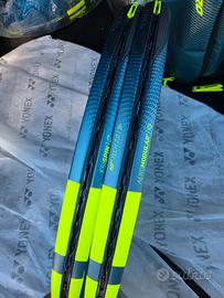 300g manico 2, bilanciamento 320, ovale 100 16x19. Racchette incordate a 4 nodi con corde Yonex Force calibro 1.25, tensione 22kg. Perfette, grippate con overgrip babolat. Manco un micro graffio. NUOVE SOLO CONSEGNA A MANO O SPEDIZIONE DOPO BONIFICO. NON TRATTO