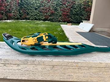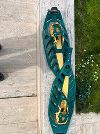 ciaspole utilizzate pochissime volte e tenetu in condizioni esemplari. Sistema di fissaggio regolabile, adatto a diversi tipi di scarponi.