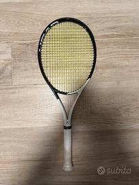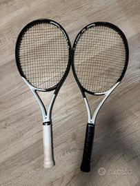 3 racchette head speed pro , 2 con multifilamento tecnifibre , 1 con monofilamento giallo