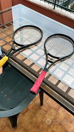 due stupende racchette da collezione, nonostante siano giocabilissime, a rete sono una bomba, come pure al servizio e colpi in back. Appena incordate, una in multifilo Head velocity, l'altra verticali in mono MSV Focus Hex +38 e orizzontali multi Dunlop iconic touch. Tutte e due 80 euro. Una 45 euro.