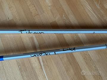 Vendesi racchette sci Leki, cm 120, con lacci di sicurezza a sgancio rapido. Tital lite, molto leggere e ben tenute.