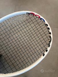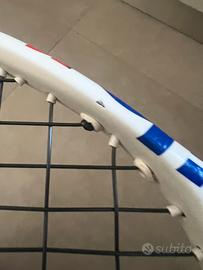 Vendo 3 racchette 300 iso per cambio modello. Benefici per il giocatore: Polivalenza- Stabilità La gamma di racchette da tennis Tecnifibre T-Fight gioca sempre più la carta della versatilità con le sue innovazioni! Infatti, grazie al suo laboratorio di analisi, il Tecnilab, Tecnifibre ha scoperto che i giocatori sono sempre alla ricerca di una maggiore manovrabilità per generare più accelerazione e controllo. La distribuzione dei pesi è stata quindi modificata in quest'ottica. La forma del telaio è inoltre più larga del 4% per fornire un incremento di potenza. Il modello T-Fight 300S è quello utilizzato da Iga Swiatek. Ha un peso di 300g con un bilanciamento a 32 cm per mantenere una grande stabilità pur avendo una buona maneggevolezza. Il suo schema corde 16x19 favorirà la polivalenza e consentirà di imprimere un buon spin. Questo modello è dotato di uno schermo 630cm² che aiuterà ad ottenere precisione all'impatto, ma richiede un buon impegno del corpo in ogni colpo. Tipo di giocatore: - Giocatori di livello avanzato alla ricerca di una racchetta versatile e stabile Tecnologie: - Manovrabilità : Modifica della distribuzione dei pesi della racchetta per garantire una maggiore manovrabilità e facilitare l'accelerazione - Sezione modificata RS : Sezione del telaio che combina una forma quadrata e rotonda per una maggiore versatilità. CARATTERISTICHE TECNICHE Manico L3 Peso non incordata300 g ComposizioneGrafite Piatto corde630 cm² Lunghezza68.5 cm Equilibrio non incordata32 cm Schema corde16x19 Prezzo per 3 racchette 250€ Prezzo per coppia 170 € Prezzo per 1 racchetta 90€ Racchette customizzate per avere solito peso. Possibilità di includere borsone da 15 racchette a 40€ Oneri spedizione a carico nostro NO PERDITEMPO!!! LE RACCHETTE SONO INTEGRE MA USATE!!! Se no COMPRATELE NUOVE!!!