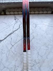 vendo 2 racchette VCORE Yonex v7 penultimo modello, piatto 100 grammi 300 bilanciamento 320 - code 16/19 - incordata con Ibrido reserve, verticale multi, orizzontale mono, manico 4, con grip Babolat bianco Syntetic feel, che riduce il manico ad un effettivo 3,5 - stato di conservazione ottima