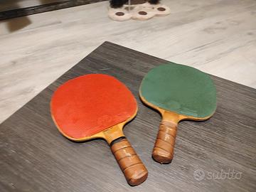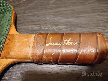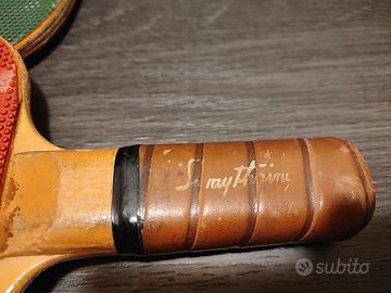 vendo per appassionati una coppia ancora in discrete condizioni di racchette da ping pong degli anni '70 modello Butterfly american style marchio della gomma "ST. BRITE CO." e la firma riportata sul manico riporta il nome SWAY THRIM ma non saprei dire altro la terza racchetta che vendo insieme alla coppia riporta la scritta VIC ed è un modello della Stiga, presumo dello stesso periodo storico.