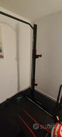 Vendo per palestra home Gym: Rack decathlon 500 Bilanciere 2 metri Bilanciere 1,20 metri Manubri Dips Panca Dischi ghisa decathlon: 8x5 kg,8x1 kg,4x2kg Tappetini