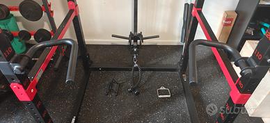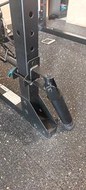 Vendo rack completo di accessori originali acquistati separatamente del valore di 200€: Landmine con T-bar da collegare al bilanciere e Supporti per dip