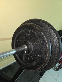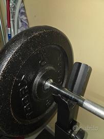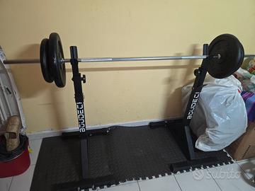 Vendo come da titolo tutto insieme rack della boudech con bilanciere da 10 kg della toorx con due dischi da 10 kg,due da 20 kg e due da 1.5 kg sempre della torx con più cuscino per fare gli squat in omaggio.Prezzo di vendita 150 euro.non spedisco.