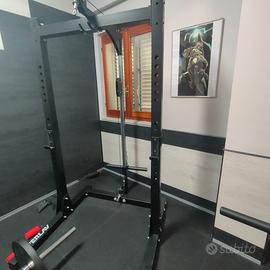 Rack compatto, stabile, solido con annesso Postazione Lat e pulley a carico libero. Condizione ottima essendo un articolo usato Trattabile