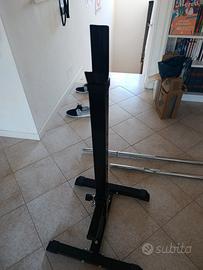 Rack per panca piana o squat più bilanciere da 7kg, in foto alcuni segni di usura.