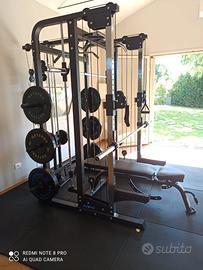 mm2 Fitness Equipment propone in vendita rack multipower polifunzionale GATEPRO GP-8001, con doppia carrucola regolabile in altezza. prezzo di vendita €2950,00 promozione ultimi pezzi -40%, prezzo scontato €1769,00 dischi peso e panca regolabile non compresi nel prezzo! (macchina nuova, spedita in scatola da assemblare) spedizione con corriere espresso €150,00 (isole escluse, da quantificare). Questo rack All In One è una stazione multifunzione compatta per eseguire diverse tipologie di esercizi, sia a corpo libero che tramite bilanciere guidato. E' presenta una doppia carrucola regolabile in altezza, utilizzabile come cavi incrociati. Nella parte centrale superiore è presente un carrucola, utilizzabile come postazione lat machine. Nella parte inferiore un ulteriore punto d'ancoraggio utilizzabile come postazione pulley. I dischi peso sono caricabili nella dorsale posteriore. Un doppio perno da 50mm vi permetterà di posizionare il carico a voi più consono. La struttura è realizzata in acciaio resistente che garantisce la massima stabilità, adatto sia alla palestra piu esigente che al centro personal. Dotata di comode maniglie in PVC con impugnatura gommata per una presa ottimale. Presenti inoltre una coppia di supporti per i bilancieri e due appoggi di sicurezza. e possibile vedere e provare il multipower smith machine GATEPRO presso il nostro show room di Faetano. macchinario nuovo, venduto con garanzia ufficiale. installazione a domicilio su richiesta. prezzo scontato, vendita promozionale €1769,00 contattaci per offerte e sconti riservati. per ogni necessità mm2 fitness equipment 3384414308wa seguici su fb daniele fitnessequipment oppure visita mm2fitness.com passa a trovarci in azienda, potrai vedere e provare tutte le novità GATEPRO. per ricerca, hammer strength, life fitness, cybex, nautilus, booty builder, multipla Technogym.