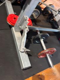 Palestra multifunzionale per allenarr tutte le parti del corpo completa di tre bilancieri, due manubri, molle, circa 200kg di pesi a vari atrezzi per allenare i diversi muscoli del corpo. La strutrura e smontabilee ci poi allenare veramente tutti i muscoli, dotata anche di panca regolabile… la struttura e in avciao zincato molto robusta.