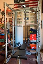 Vendo Pawer Rack (POWERLINE PPR200X). Gabbia di potenza per l'allenamento della forza in casa,ma anche in palestra,dotato di un sistema di pulegge integrato per esercizi ai cavi;permette di eseguire in sicurezza esercizi fondamentali come: squat,distinzioni su panca inclinata,declinata,piana e militare,trazioni . Dischi (per un tot.di 180kg),2bilanceri e blocchi di sicurezza tutti inclusi. 18 livelli di regolazioni. Prezzo non trattabile.