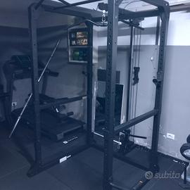 Rack decathlon in buonissime condizioni con lat machine e pulley sbarre di protezione per squat ottimo oer un buon allenamento tutto come da foto non trattabile no perditempo non spedisco e trasporto a carico dell'acquirente grazie. No technogym no panatta no toorx ecc