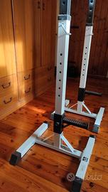 Ha diverse altezze impostabili per poter essere utilizato per esercizi come panca piana ed inclinata, squat o military press.