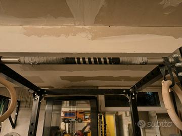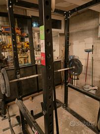 vendo rack artigianale colore nero, possiblità di regolare ad ogni altezza le staffe. il rack è sicuro e solido provato con tanti kg sia le safety bar che le staffe di alloggio per il bilanciere. Altezza sui 2 mt e molto spazioso all'interno circa 1 mt , presente sbarra x trazioni di spessore e materiale ottimi. Vendo ,anche separatamente, pedana da stacco Power Gear 2 mt x 2 in ottime condizioni anche questa. Disponibili anche dischi artigianali , per info in chat grazie.