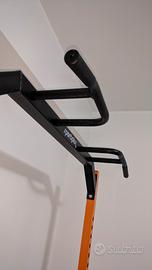 Vendo rack da home gym dotato di barre di sicurezza per squat \ panca e barra per trazioni multipresa. Molto robusto. È dotata anche di barre regolabili per i Dip , e appoggi regolabili per squat e panca. Non è presente la panca. Sui montanti posteriori sono presenti in basso due barre orizzontali per riporre i dischi di ghisa, utili anche a fare da contrappeso per stabilizzare l'intero rack. Le foto risalgono al momento del primo ed unico montaggio, risalente a circa 4 anni fa. Poi , causa trasferimento per lavoro, il rack è stato smontato, imballato e conservato in cantina. Per tali motivi le uniche foto che posso fornire sono quelle risalenti a quei giorni. Non è previsto togliere gli imballi per visionarlo ma garantisco la sua funzionalità e il suo stato onesto e decoroso. Inoltre i miei feedback su subito fanno da garanzia. Ho utilizzato il rack per circa un anno e quindi risultano normali scorticature della vernice dovute allo spostamento dei dischi nei fori di posizionamento delle barre inoltre ho scritto a mano, con il pennarello , dei numeri, in modo da non dovere ogni volta contare i fori al momento di posizionare gli accessori. Le piccole scorticature ovviamente non pregiudicano la funzionalità del rack, solo dettagli relativi ad un discorso puramente estetico. Il rack si trova, smontato e imballato a Castellammare del Golfo e poiché i colli risultano molto pesanti non prevedo la spedizione ma solo il ritiro a mano.