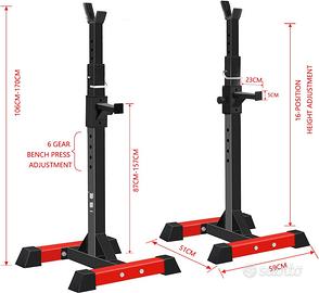 Vendo rack in buone condizioni. Ottimo per squat in quando regolabile in altezza fino a 175cm e supporta bene il carico (provato con 110kg). Ottimo anche per panca piana e Military Press.