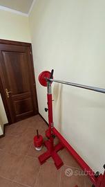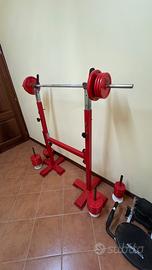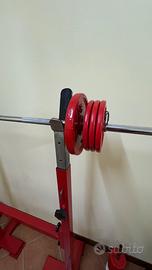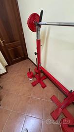 Struttura rack per squat con supporto bilanciere e pesi inclusi, ottimo per allenamento completo tipo palestra in casa, squat, panca, stacchi ecc. Struttura molto robusta e stabile, roba seria, stile Technogym, made in Italy. Attrezzo praticamente nuovo, usato pochissimo e sempre tenuto in modo maniacale. In alcune parti può sembrare sporco ma è solo polvere. Visionabile a Padova solo per realmente interessati. Prezzo trattabile solo per acquisto di più attrezzi. Astenersi perditempo.