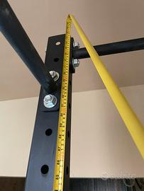 Struttura Rack Rig BEAR FITNESS in ferro tubolare con profilo rettangolare per aumentare la portanza adatta a sostenere grandi carichi, assemblato con bulloni zincati di 16mm, verniciatura a polvere con ottime qulita di finitura e resistenza all’usura, barra con grip ad aderenza migliorata. MISURE 260x100x100
