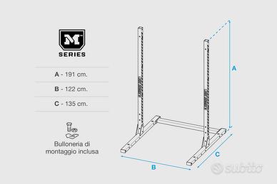 Usato pochissime volte, come nuovo. Caratteristiche del Rack • Materiale: acciaio verniciato a polvere • Bulloneria zincata M16 • Dimensioni sezione acciaio: 80x80x4 mm Dimensioni • Altezza: 191 cm • Base: 122x135 cm CrossFit Crosstraining funzionale palestra gym homegym pesi pesistica panca